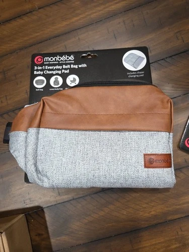 Monbebe 3 in 1 Everyday Belt bag with Changing Pad Grey & Brown Design NEW B18