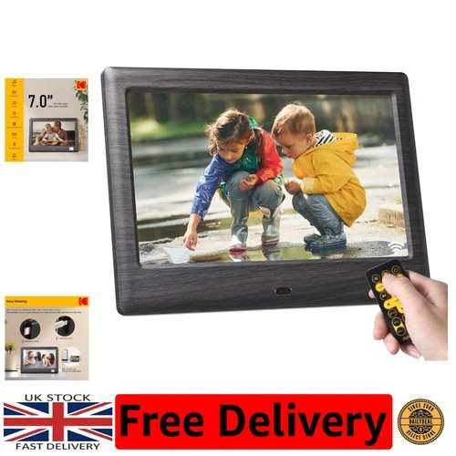 Automatic Rotating 7-Inch Photo Frame with Alarm, Clock & Multimedia Playback