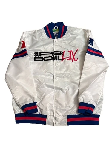 Starter Super Bowl LIX 59 Satin Bomber Jacket White Men’s Size XL