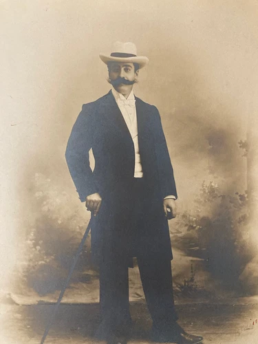 Very Beautiful 1900 Black and White Portrait Dandy Man Blain Algiers Moustache