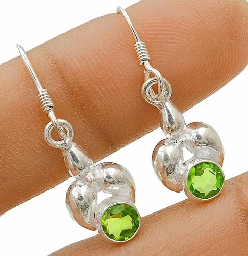 Peridot 925 Solid Genuine Sterling Silver Earrings 1 1/2" Long @B3-2