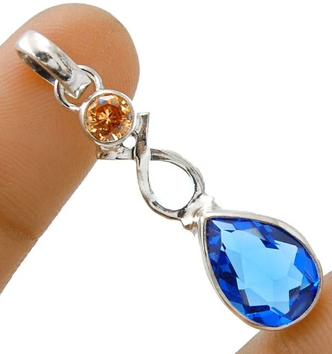 2CT Treated Sapphire 925 Solid Sterling Silver Pendant 1 1/2'' Long @B15-7