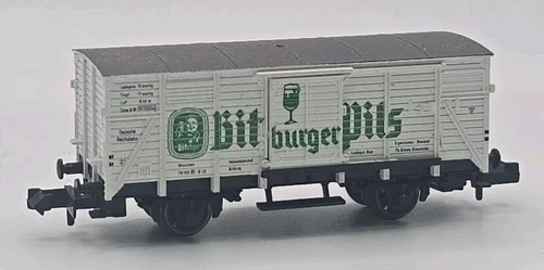 FLESCHMANN N GAUGE 8362 BITBURGER PILS BEER REFRIGERATOR WAGON GERMAN WHITE...