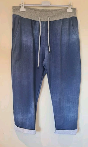 Magic Pants Size 16-20 Lagenlook blue denim Jogger Tie Waist One Size Italy New