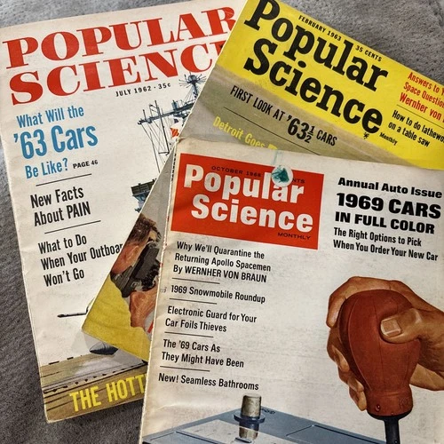 Lot 3 Vintage Popular Science Magazine Auto Issues Jul 1962, Feb 1963, Oct 1968