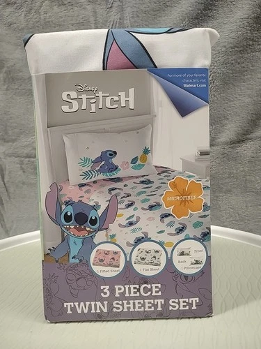 Disney STITCH 3pc Twin Sheet Set 1 Fitted, 1 Flat Sheet & 1 Pillow Case New