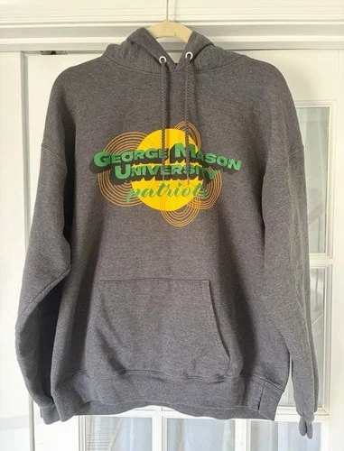 Hanes EcoSmart Men's Hoodie Size Large Gray George Mason University Back Print