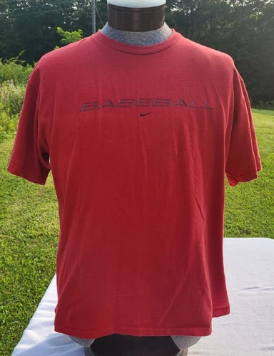 Nike Shirt Mens L Large Red Baseball Spellout Graphic Print Center Swoosh Y2K