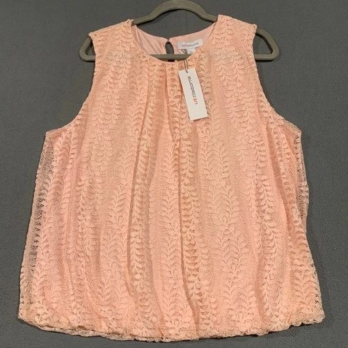 Liz Claiborne Womens XL English Rose Pink Lace Sleeveless Bubble Hem Blouse NWT