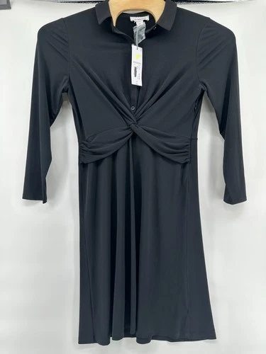 NWT Classic Liz Claiborne Black Long Sleeve Stretch Button Front w/Twist Sze 12