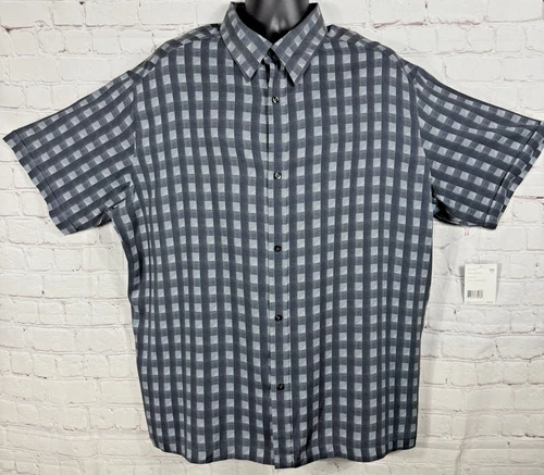 Axcess by Liz Claiborne Company Men's 2XL Short Sleeve Dark Gray Plaid Shirt NWT