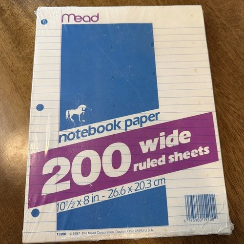 Vtg Lined Notebook Paper Mead Wide Ruled 1987 Sealed 80s School Supplies NOS