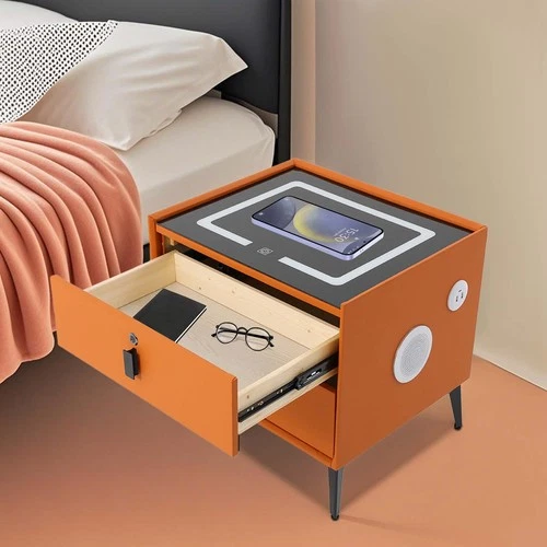 Smart Nightstand W/ Bt Speaker Wireless Charger Fingerprint Lock 2 Drawer Modern