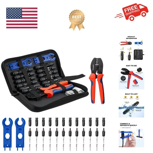 Solar Crimper Tool Kit - Crimper, 12 Pairs Connectors, 2 Spanner Wrench for 1...