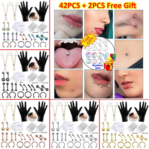 42Pcs Professional Body Piercing Tool Kits Ear Nose Navel Needles Set 14G-16G US