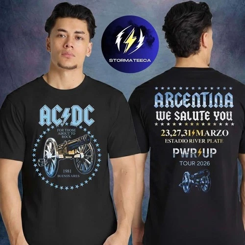 Vintage AC DC Power Up Tour 2026 Argentina River Plate Two Sided Shirt New Fast