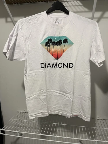 Diamond Supply Co Mens Sz L White Cotton Crew T-Shirt Skateboard Palm Tree Logo