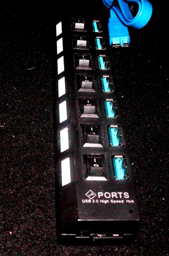 Seven (7) Port USB 3.0 Switchable Hub with blue power cord