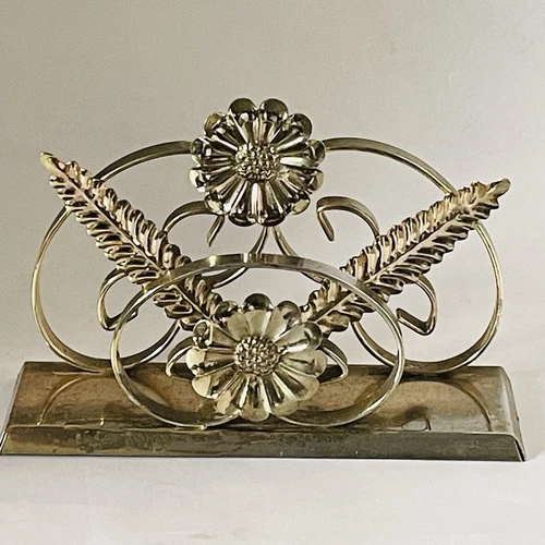 Mid Century Gilt Metal Letter Rack Floral Decoration Vintage Retro Home