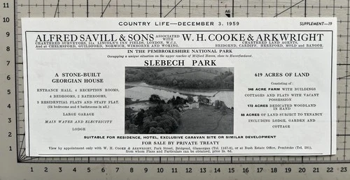 Slebech Park - Pembrokeshire - Wales For Sale - 1959 Cutting 399