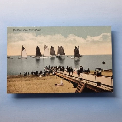 Aberystwyth Ceredigion Postcard Wales C1905 Racing Yachts Bay Edwardian Crowd