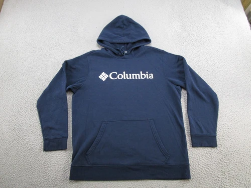 Columbia Spell Out Pullover Hoodie Sweatshirt Mens Size L Navy Blue Outdoors