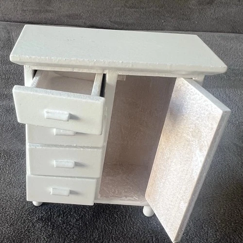 Miniature Dollhouse White Cabinet Drawers Open Great For Painting Decor