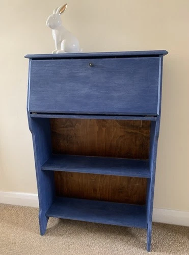 Vintage Blue Upcycled Secretary Desk Bureau Writing Desk Home Decor