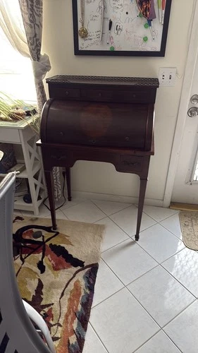 Vintage Hepplewhite Style Mahogany Roll-Top Secretary Desk