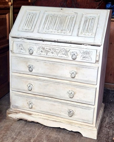 Vintage Bureau Secretary Writing Desk In Cream Shabby Chic Finish by OLD CHARM
