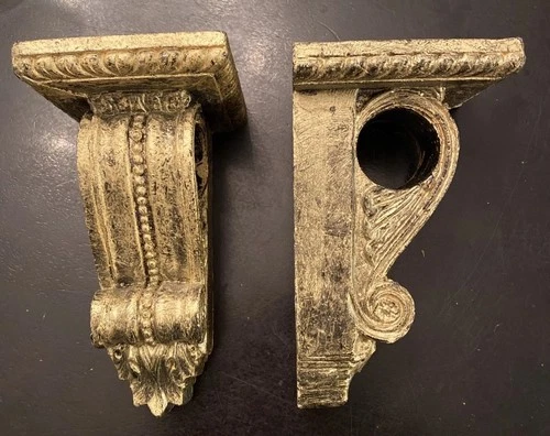 Vintage Gold Resin Wall Corbels Curtain Rod Holders Shelf Brackets Pair 7”