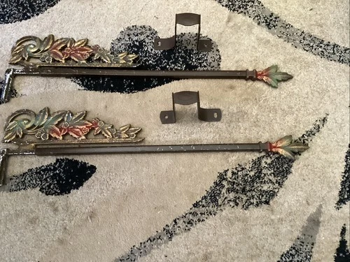 2 vintage antique gold painted cast iron swivel curtain rods. Arrows