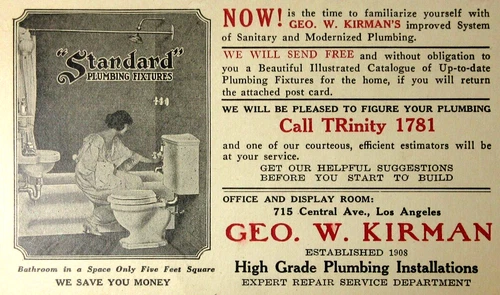 Plumbing Bathroom Fixtures Business Card George Kirman Los Angeles CA 1924