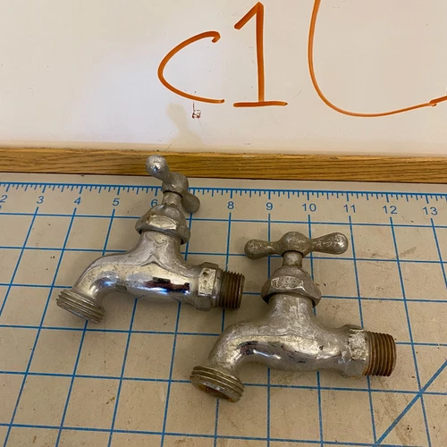 Pair Vintage McDonald Metal Water Spigot Faucet Plumbing Fixtures Chrome