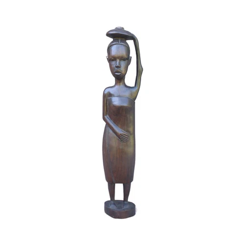 Vintage african wooden sculpture statue 13.39" lady with bowl African art 34 cm