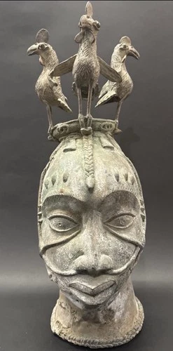 Benin Bronze Bust – Royal Court Head -H23 W8x8 Inch -20 Century