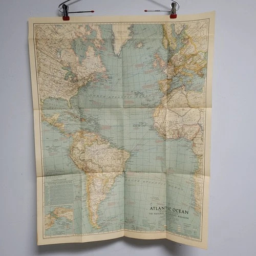 National Geographic Atlantic Ocean Fold-Out Map Magazine 1939 Collectible 31x25