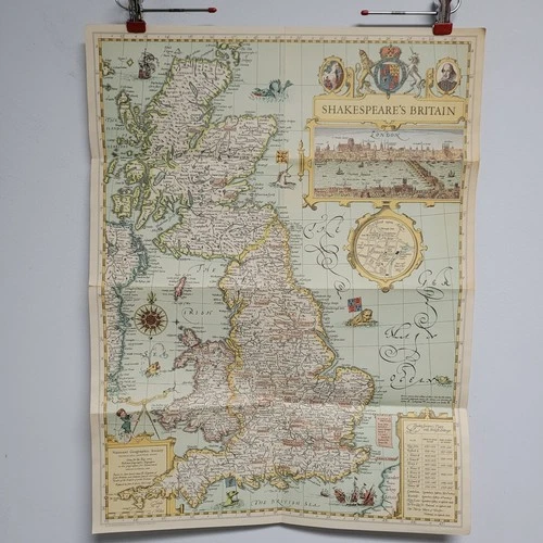 VINTAGE SHAKESPEARE'S BRITAIN WALL MAP National Geographic May 1964
