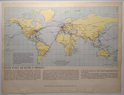 1957 Antique MAJOR WORLD AIR ROUTES Atlas Map - Ency. Britannica World Atlas