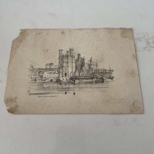Original Antique Engraving of Caernarvon Castle Wales