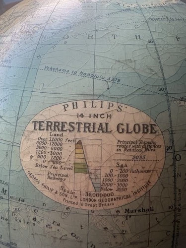 Vintage Philips 14” Terrestrial Globe – Philip &Son c.1936 –Pre-WWII World Globe