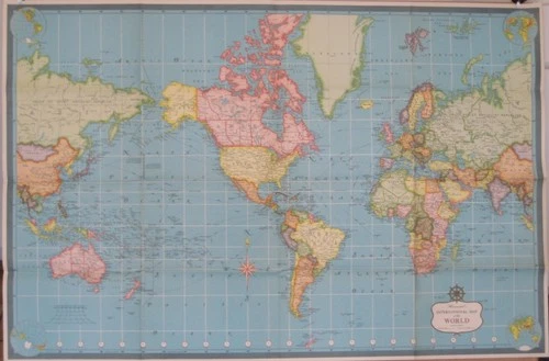 Huge 1953 Hammond INTERNATIONAL MAP OF THE WORLD MAP on Mercator's Projection