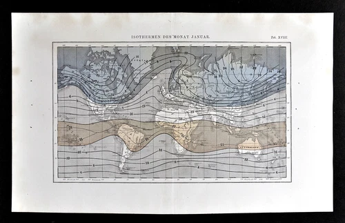 1872 Muller World Map Isothermal Lines January Temperatures Climate Change
