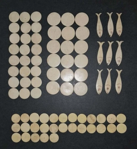 Antique (Victorian) Bone Fish and Other Bone Carved Gaming Counters