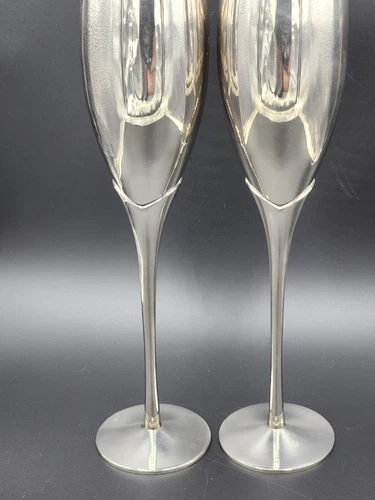 VINTAGE SET OF BRASS CHAMPAGNE VINTAGE FLUTES 10.5IN BY 2.5IN