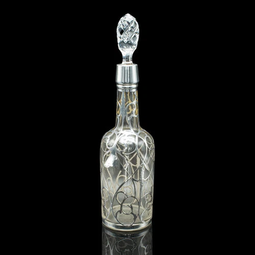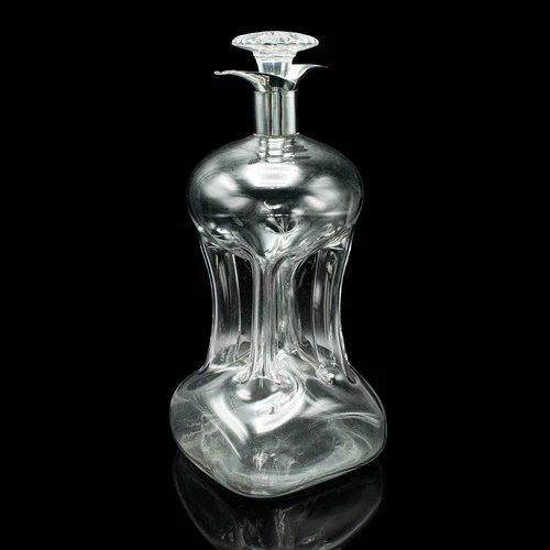 Antique Spirit Decanter, English, Glass, Silver, Port, Brandy Bottle, Edwardian