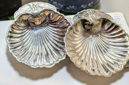 Vintage Baroque MCM Silver Plated Clam Shells 4 Summer Seashell trinket dishes