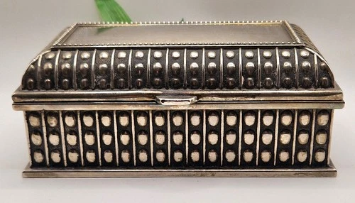 Large Heavy Silver Plated Trinket Box Jewellery Box Velvet Lined Vintage Storage