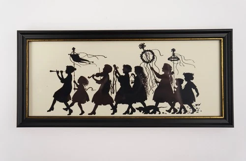 Enchanting silhouette: "Dance in May" as a print, framed 26x12cm. (G12)