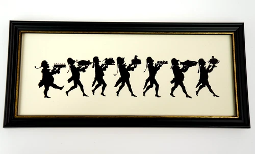 Enchanting silhouette: "The 7 course menu" as print, framed 26x12cm. (G1)